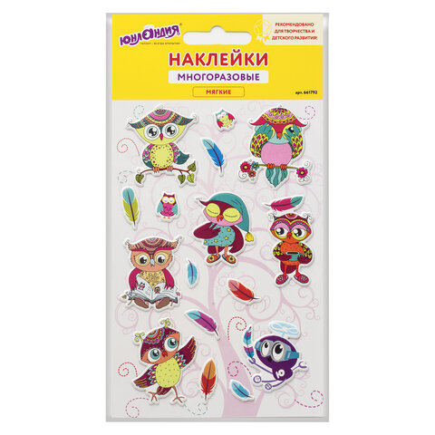 Наклейки зефирные «Мудрые совы», многоразовые, 10*15 см, ЮНЛАНДИЯ