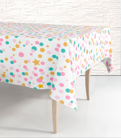 Яркая полиэтиленовая скатерть поможет сделать торжество ярче и веселее: она отлично украсит праздничный стол и сохранит его в чистоте.
