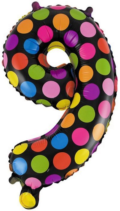 Воздушный шар с клапаном (16»/41 см) Цифра, 9 Супер Яркий, 1 шт.
