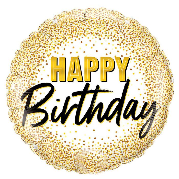 Шар Ф 18″ Круг Happy birthday! Золотое конфетти 45 см /К