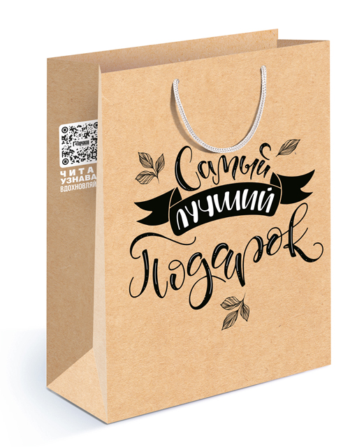 Пакет подарочный, Самый лучший подарок, Крафт, 31*22*10 см, 1 шт.