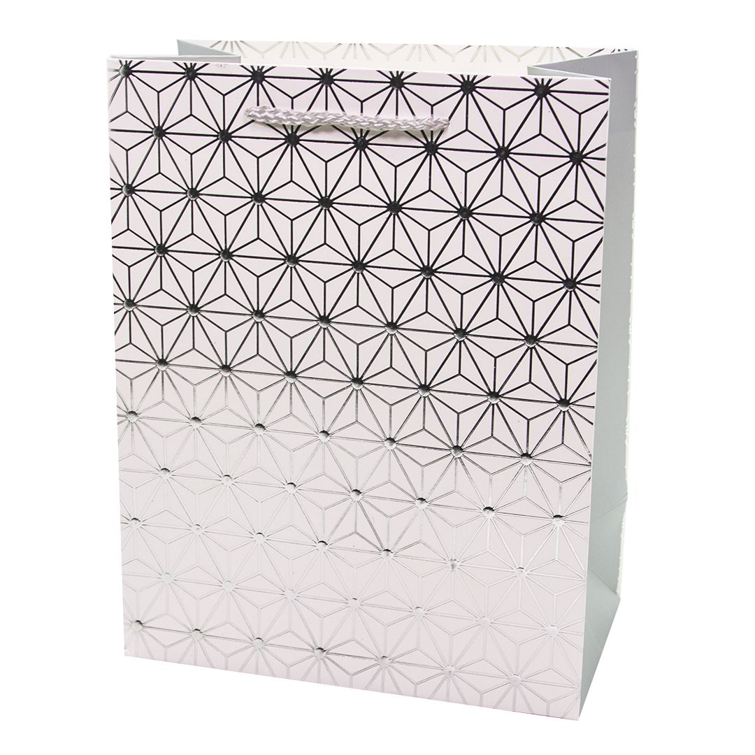 Пакет подарочный, Японский узор, Звездный паттерн, Серебро, Металлик, 32*26*12 см, 1 шт.