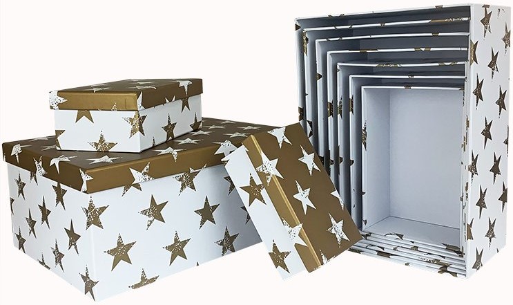 Набор коробок Звезды, Белый/Золото, 34*26*15 см, 10 шт.