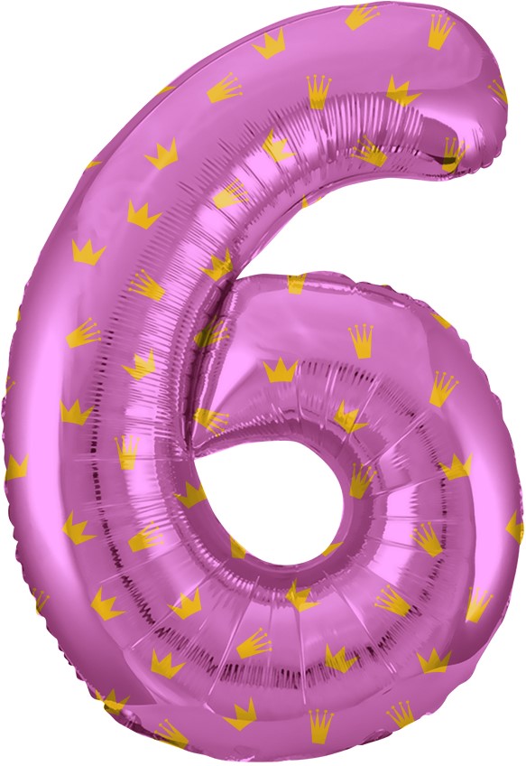 Шар (34»/86 см) Цифра, 6 Золотые короны, Розовый, 1 шт. в упак.