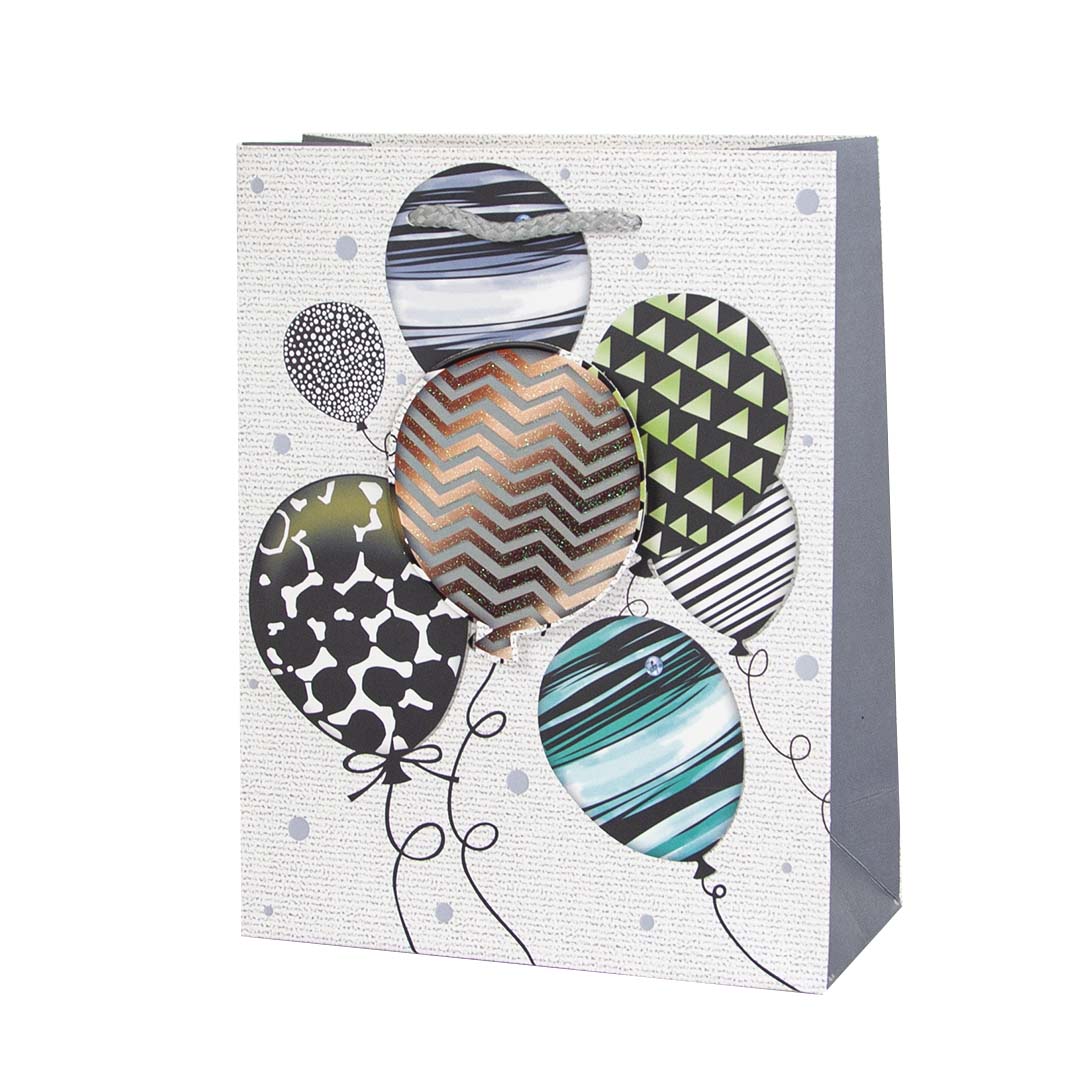 Пакет подарочный 3D, Воздушные шары, с блестками, 23*18*8 см, 1 шт.