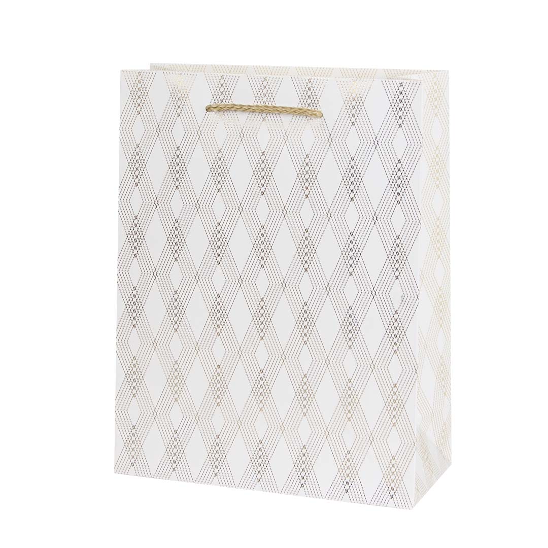 Пакет подарочный, Золотые ромбы, Белый, Металлик, 42*31*12 см, 1 шт.