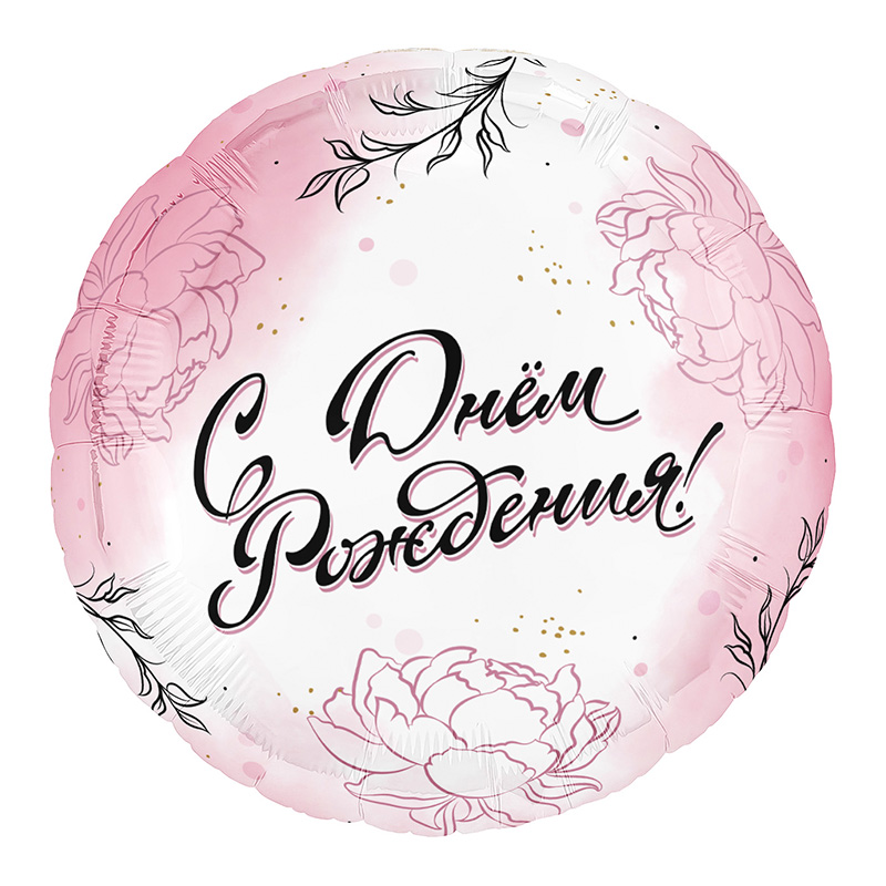 Шар (18»/46 см) Круг, С Днем Рождения! (бабочки), Розовый, 1 шт.