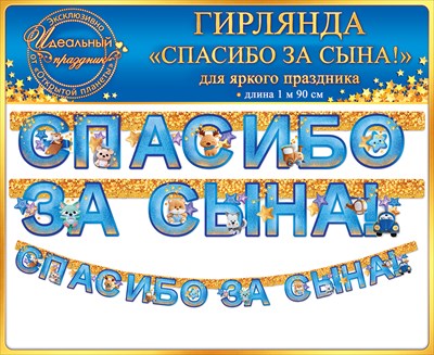 Гирлянда-буквы Спасибо за Сына! (зверята), 190 см, 1 шт