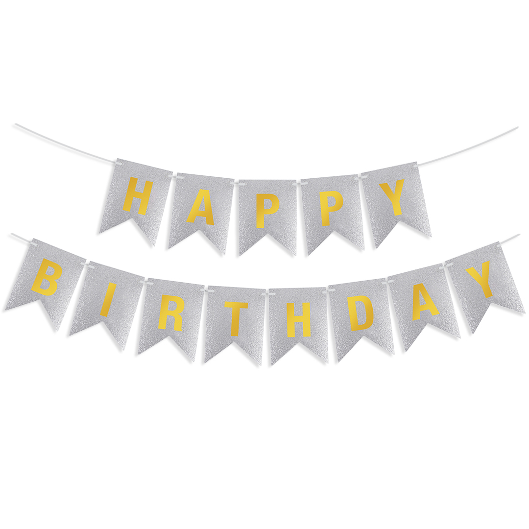 Гирлянда Флажки, Happy Birthday, Серебро/Золото, Металлик, с блестками, 350 см, 17*12 см, 1 упак.