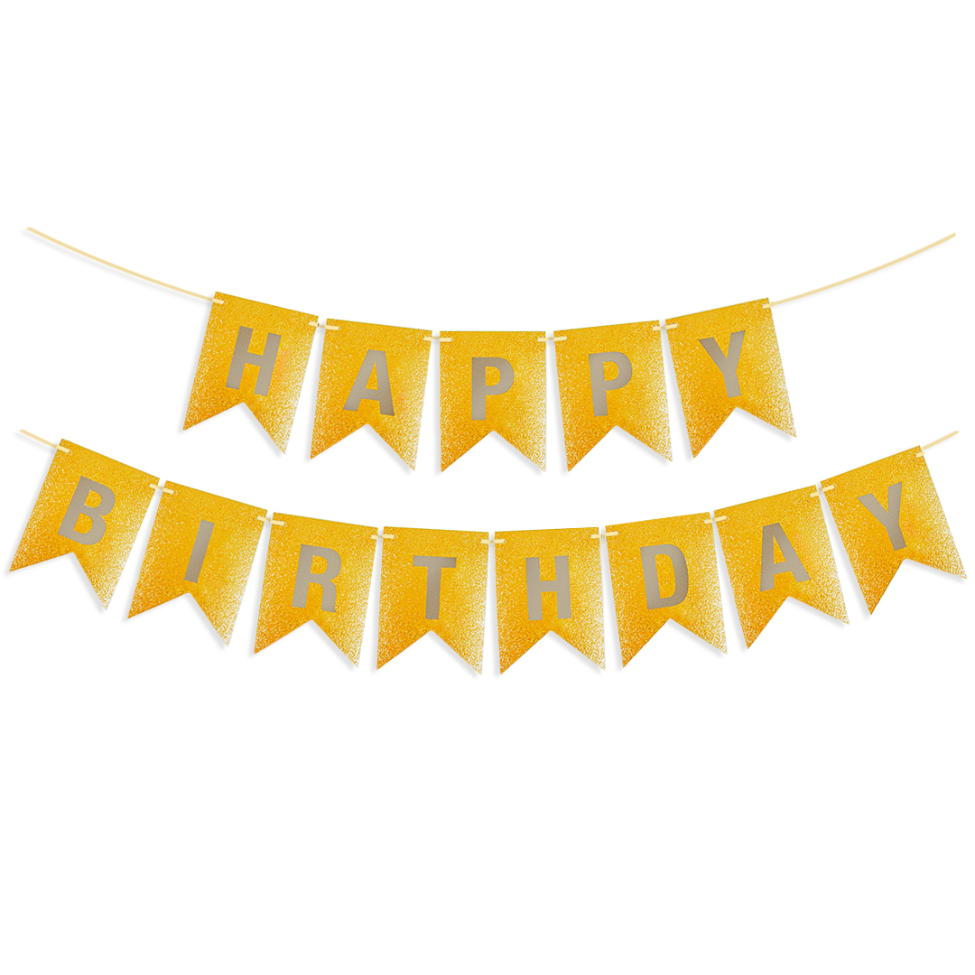 Гирлянда Флажки, Happy Birthday, Золото/Серебро, Металлик, с блестками, 350 см, 17*12 см, 1 упак.