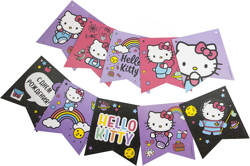 Гирлянда Флажки, Hello Kitty, С Днем Рождения!, Ассорти, 300 см, 1 шт.