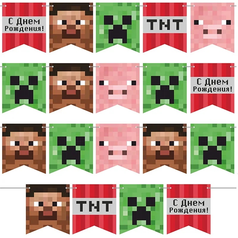 Гирлянда Флажки, Пиксели, С Днем Рождения!, 300 см, 1 шт.