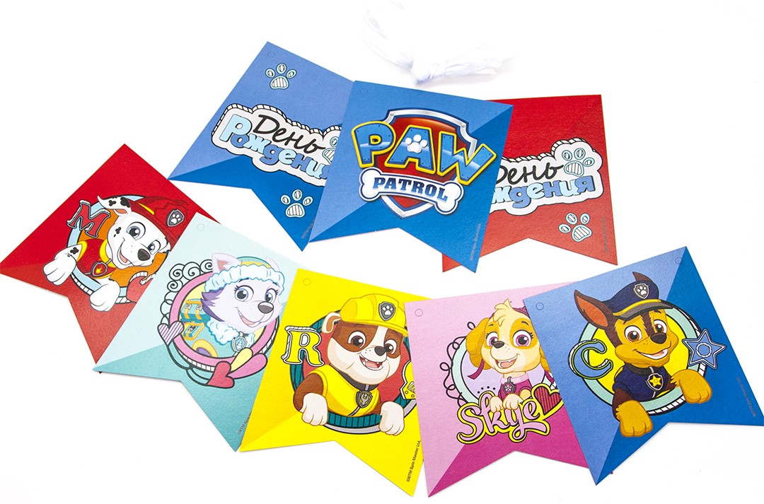 Гирлянда Флажки, Щенячий Патруль, С Днем Рождения!, 300 см, 1 шт.