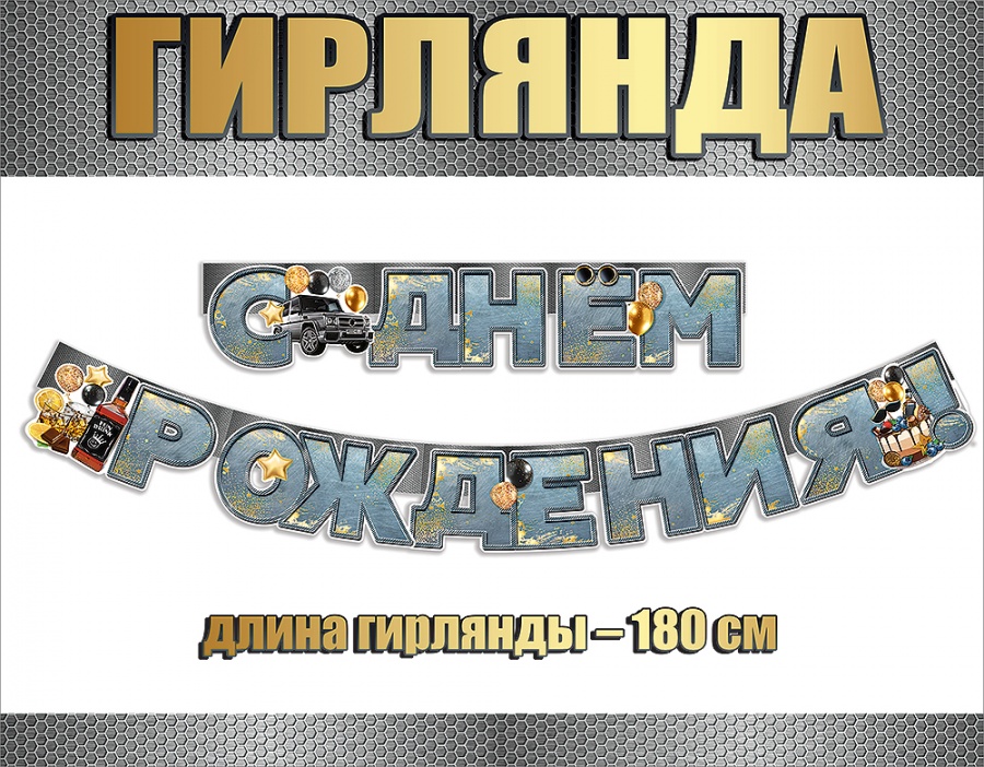 Гирлянда С Днем Рождения! (бутылка виски), 180 см, 1 шт.