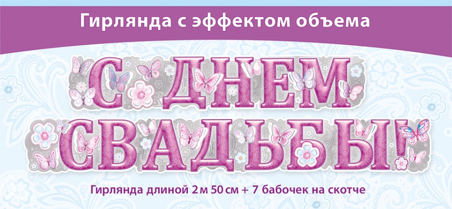 Гирлянда С Днем Свадьбы! (бабочки), 230 см, 1 шт.