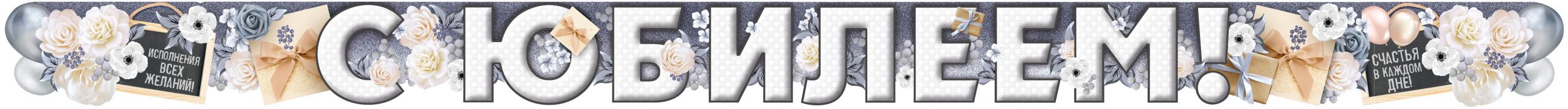 Гирлянда, С Юбилеем! (цветы), Серебро, 200 см
