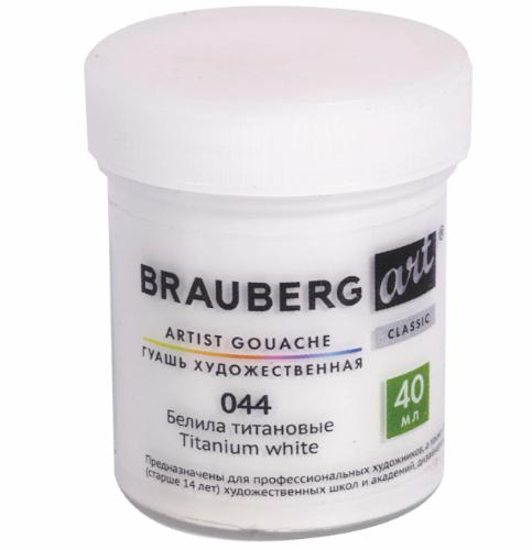 Гуашь художественная, BRAUBERG ART CLASSIC, баночка 40 мл, БЕЛИЛА ТИТАНОВЫЕ, 1 шт
