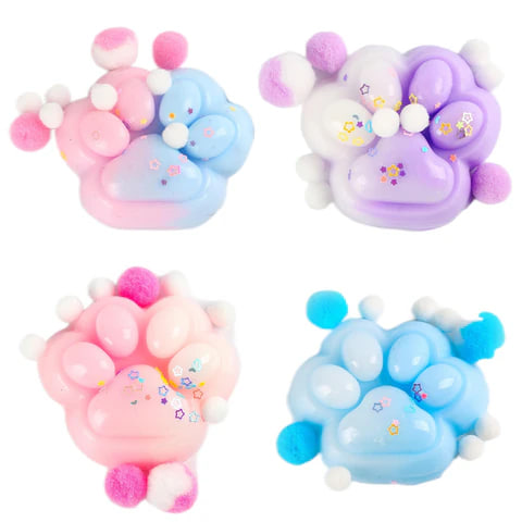 Игрушка-антистресс «ДВУХЦВЕТНАЯ КОШАЧЬЯ ЛАПКА С ПОМПОНАМИ», 7х6 см, ассорти, дисплей, JOLLY J., 1 шт