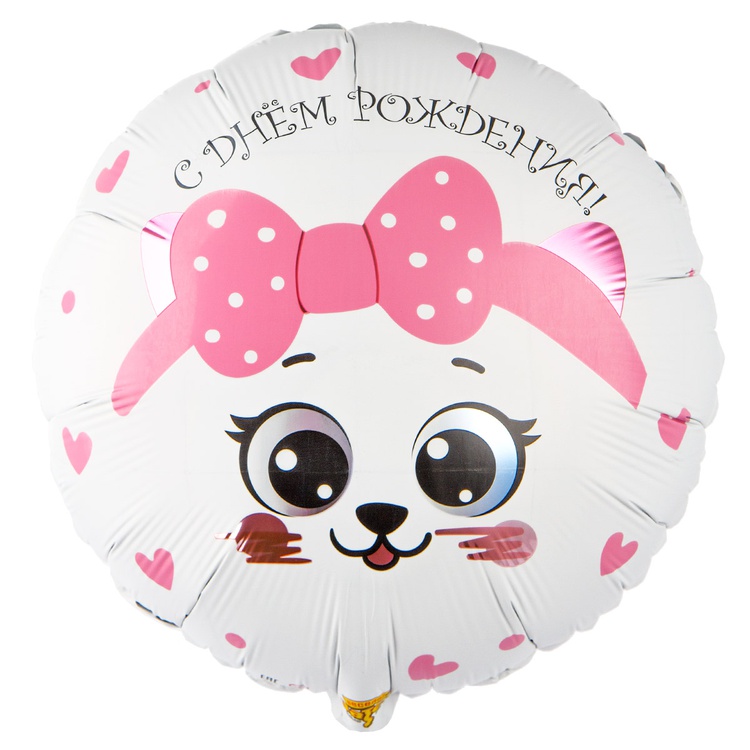 К 18″ РУС ДР Кошка с розовым бантиком, 1 шт