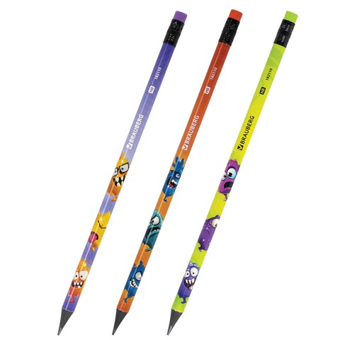 Карандаш чернографитный с принтом кросс-серия МОНСТРИКИ, 1 шт., HB, ластик, ассорти, BRAUBERG, 1 шт.