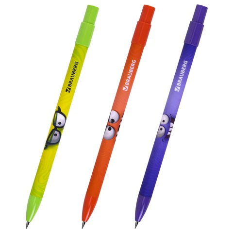 Карандаш механич. цанговый 2 мм,с принтом кросс-серия МОНСТРИКИ,BRAUBERG,HB,встроенная точилка,1 шт