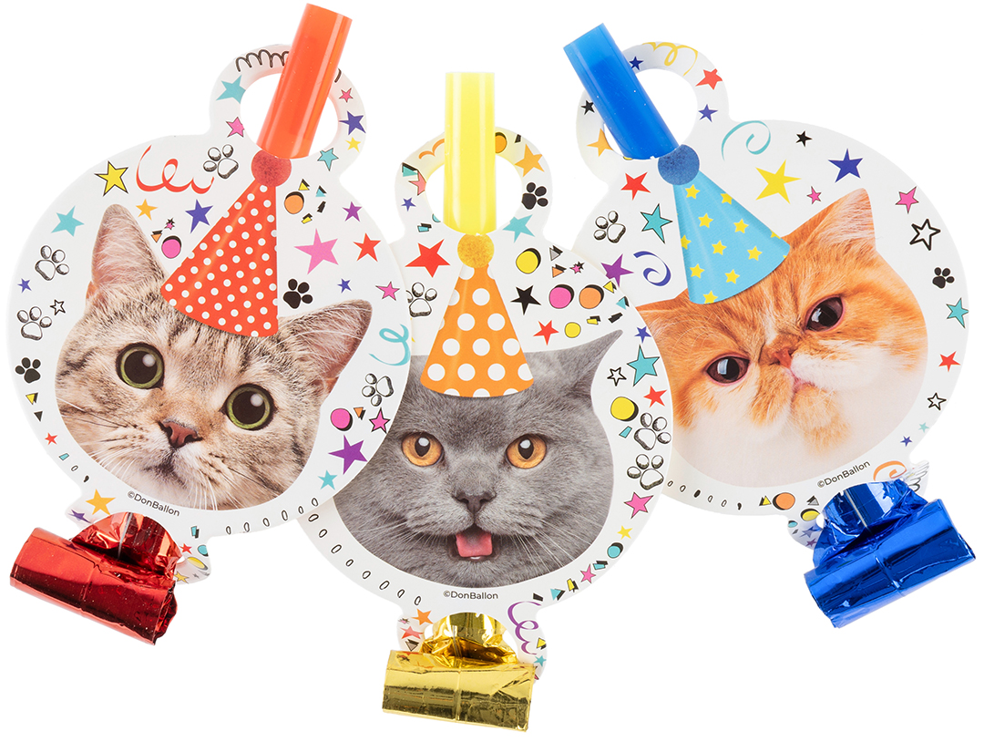 Карнавальные язычки гудки, Котики, 11 см, 6 шт. в упак.