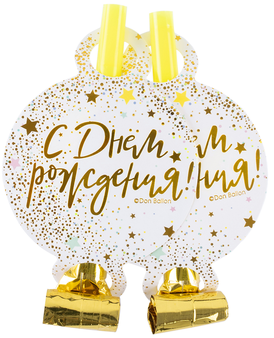 Карнавальные язычки гудки, С Днем Рождения (сверкающие блестки), 11 см, 6 шт. в упак.