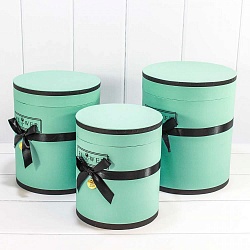 Коробки Цилиндр, Черный бант, Мятный, 3 шт.