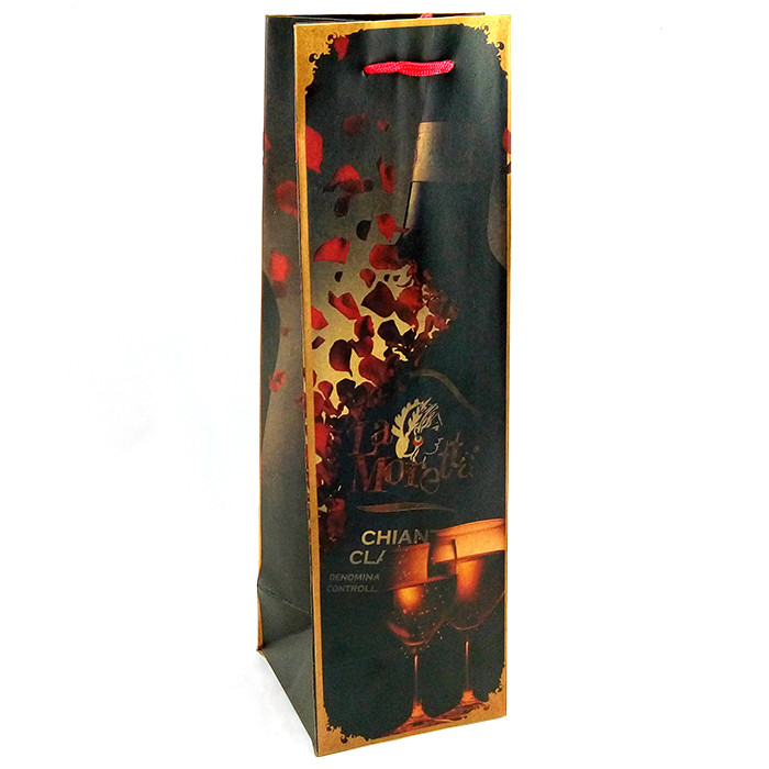 Пакет подарочный, Золотые полосы, Черный, 23*18*10 см, 1 шт.