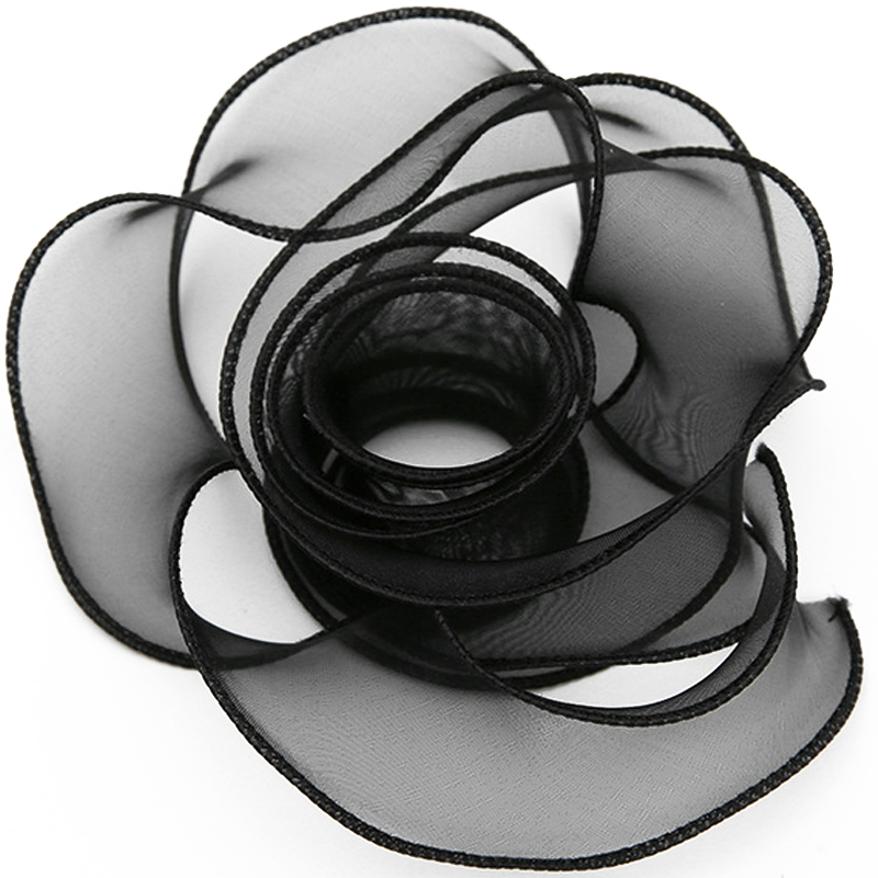 Лента декоративная (4 см*9,14 м) Органза с леской, Черный, 1 шт.