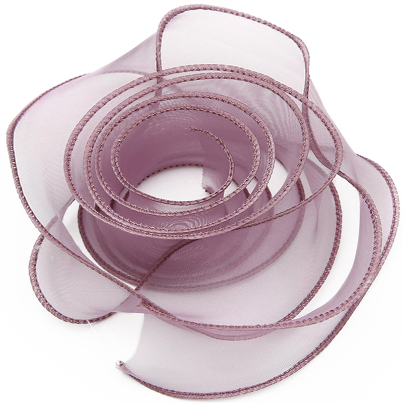 Лента декоративная (4 см*9,14 м) Органза с леской, Дымчатая сирень, 1 шт.