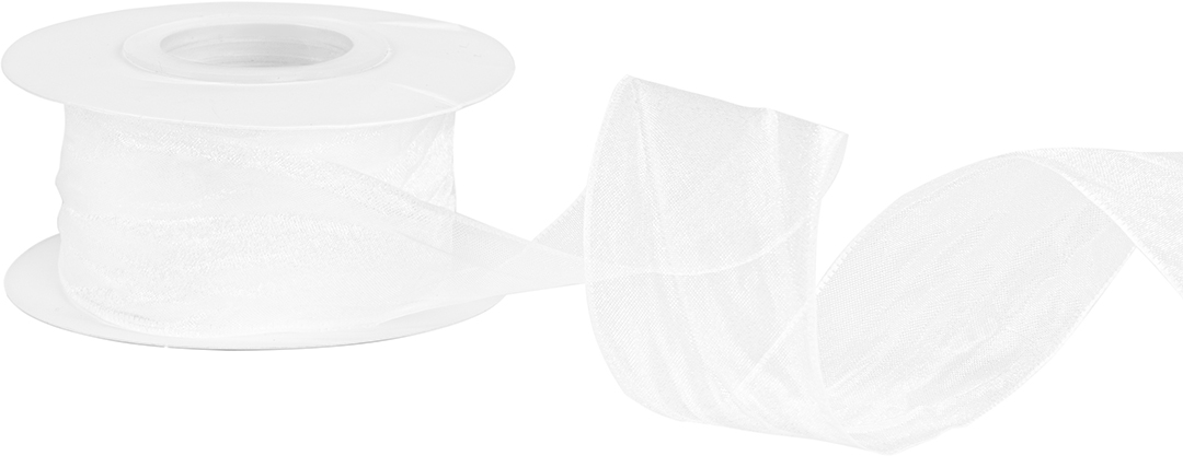 Лента декоративная (4 см*9,14 м) Органза с леской, Белый, 1 шт.