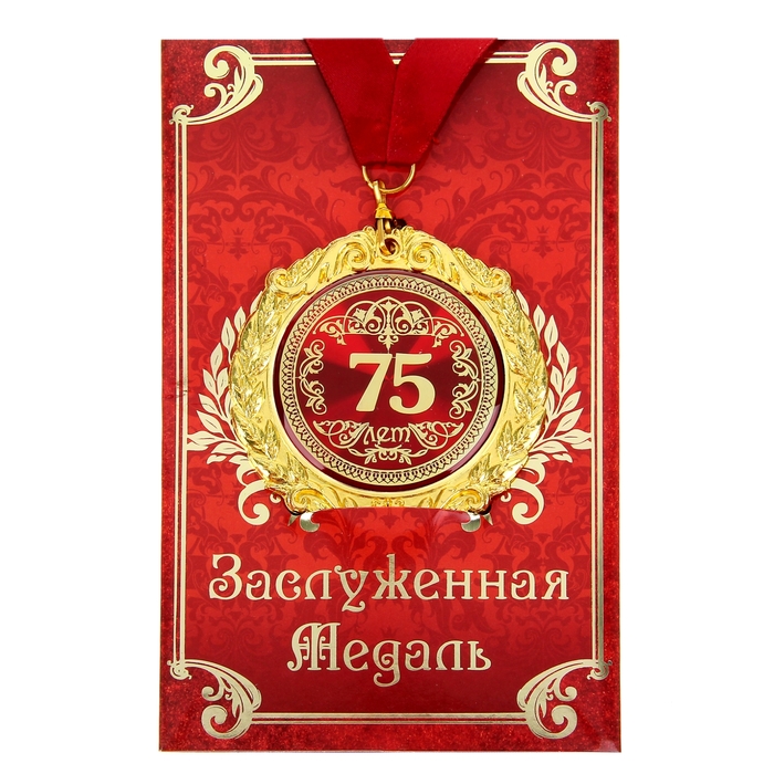 Медаль юбилейная на открытке «75 лет», d=7 см, 1 шт.