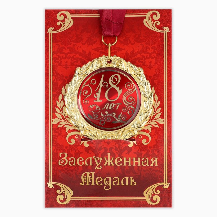 Медаль на открытке «18 лет», d=7 см, 1 шт.