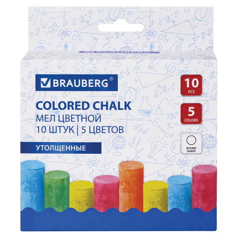 Мел цветной BRAUBERG, НАБОР 10 шт., для рисования на асфальте, круглый