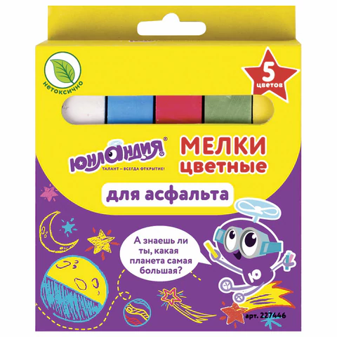 Мел цветной ЮНЛАНДИЯ, НАБОР 5 шт., для рисования на асфальте, квадратный,