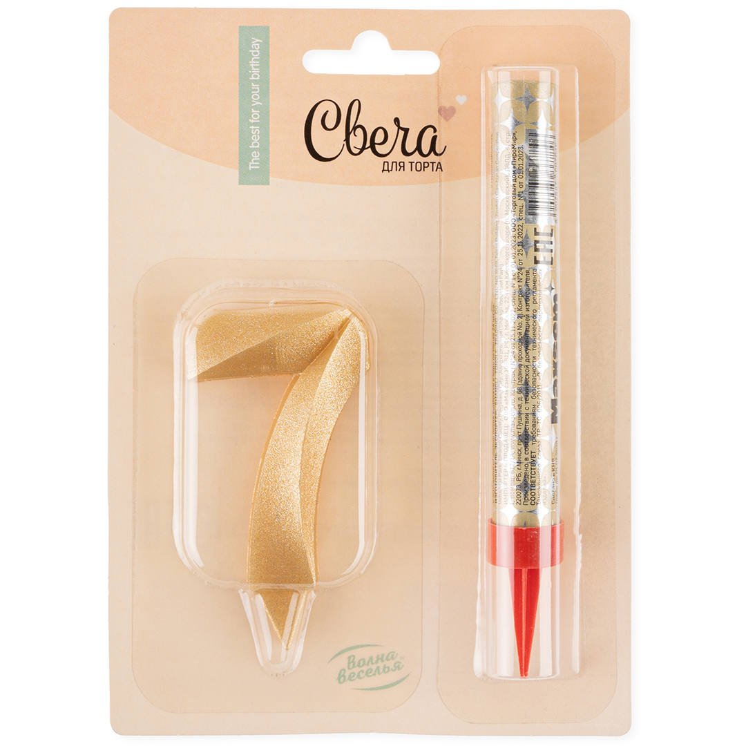 Набор, Фонтан и Свеча Цифра, 7 Грани, Золото, 10 см, 1 шт.