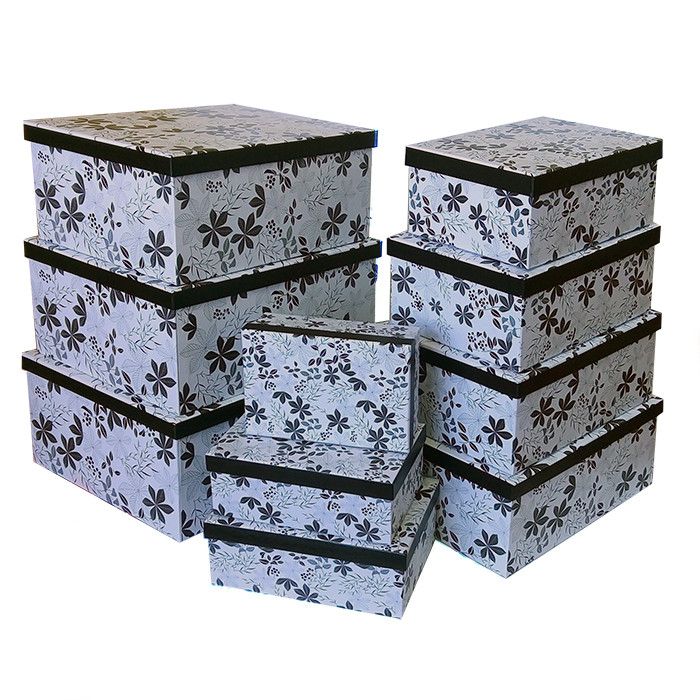 Набор коробок 10 в 1 «Цветочный монохром» / прямоугольник 37*30*16,5/…/18*12*7,5 см