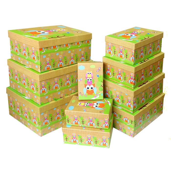 Набор коробок 10 в 1 “Детский. Совушки” / прямоугольник 37*30*16,5/…/18*12*7,5 см