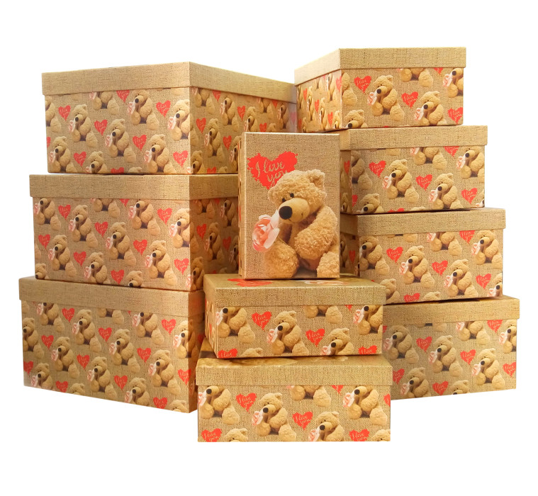 Набор коробок 10 в 1 «Мишка с любовью» / прямоугольник 37*30*16,5/…/18*12*7,5 см