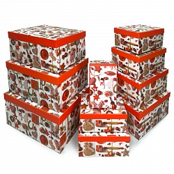 Набор коробок, Новогодние шапочки, Красный/Белый, 3 шт.