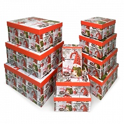 Набор коробок, Заснеженный венок с шариками, 10 шт.