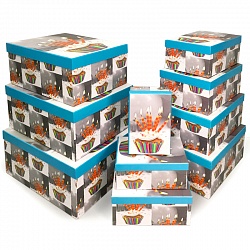 Размеры коробок: 37*30*17см, 35*28*16см, 33*26*15см, 31*24*14см, 29*22*13см, 27*20*12см, 25*18*11см, 23*16*10см, 21*14*9см, 18*12*7см.