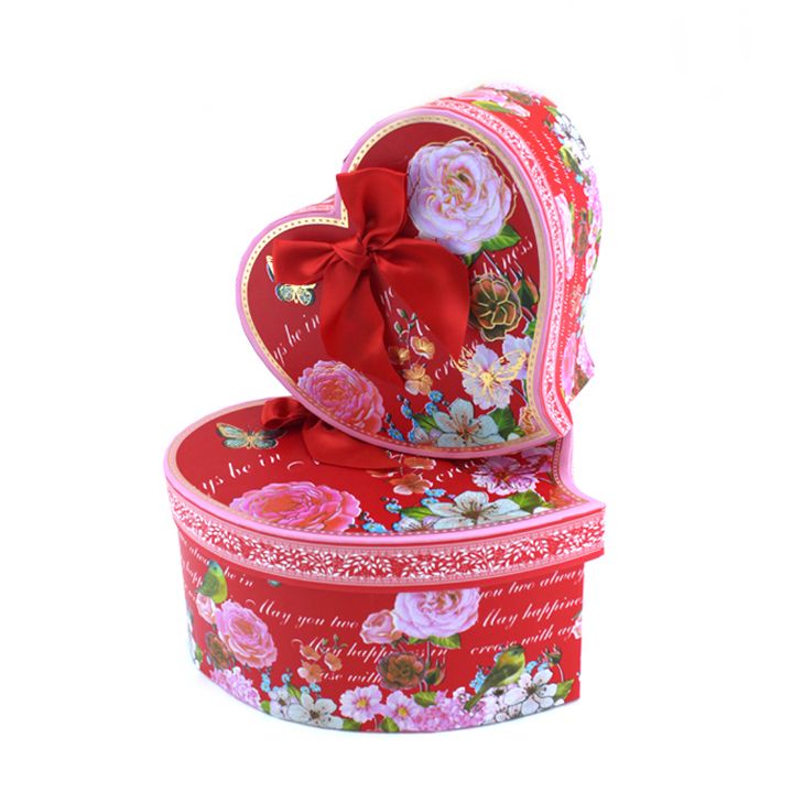 Набор коробок 2 в 1 «Винтажные цветы» Красный с бантом / сердце 18*20*10 / 15*16*8см