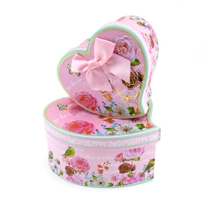 Набор коробок 2 в 1 «Винтажные цветы» Розовый с бантом / сердце 18*20*10 / 15*16*8 см