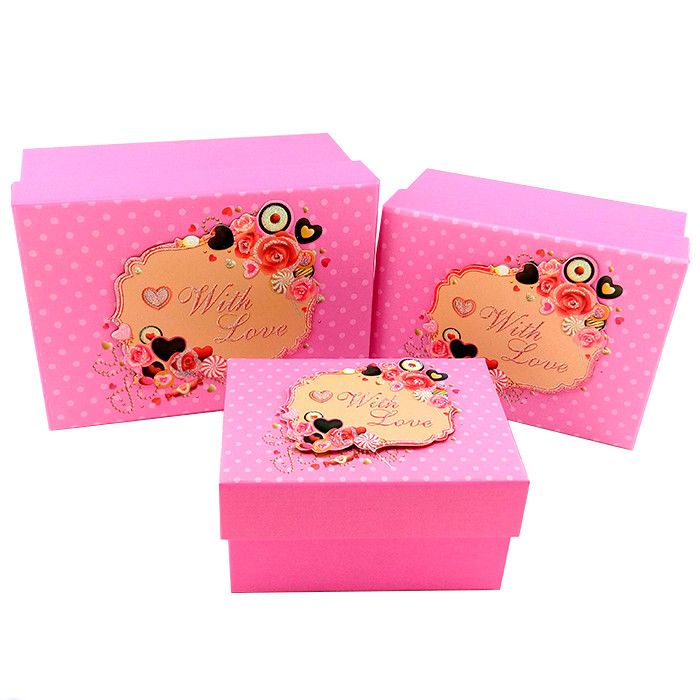 Набор коробок 3 в 1 «Любовь и шоколад» Розовый / прямоугольник 15,5*11*8 / 13,3*9,5*6,8 / 11*7,8*5,5