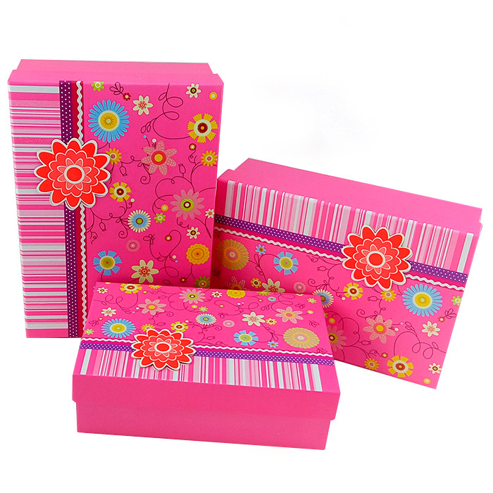 Набор коробок 3 в 1 «Незабываемый праздник» Розовый / прямоугольник 20*13*6 / 22*15*7 / 24*17*8 см