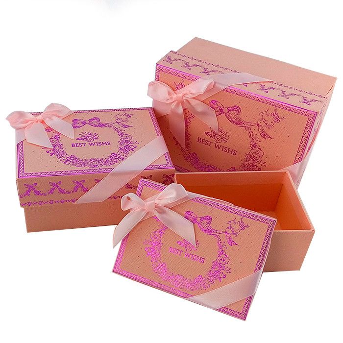 Набор коробок 3 в 1 «С наилучшими пожеланиями» Розовый /прямоугольник 15,7*11,4*8,2 / 13,7*10*7/ 11,