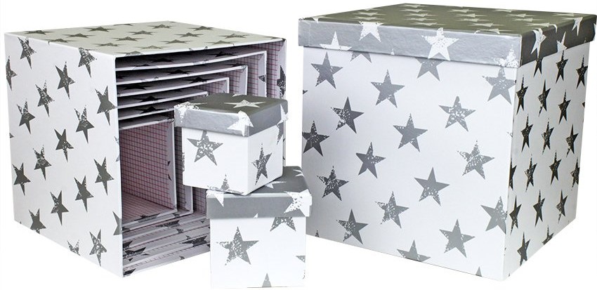 Набор коробок Куб, Звезды, Серебро, 26*26*26 см, 10 шт.