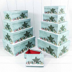 Набор коробок, Новогодняя звезда, Мятный, 10 шт.